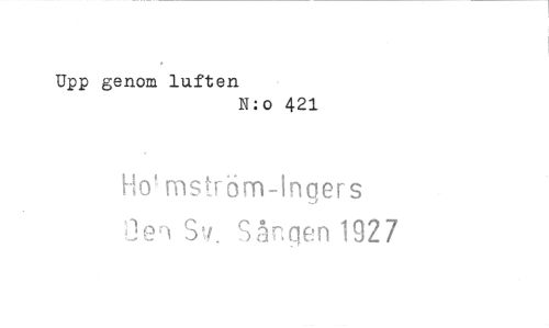 //// Upp genom luften //// N:o 421 //// Ho' mstrom-ingers Cen S-/. Sånqen 1927