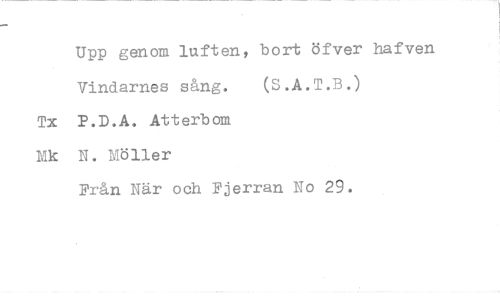 //// Upp genom luften, bort öfver hafven Vindarnes sång. (S.A.T.B.) //// Tx P.D.A. Atterbom Mk N. Möller //// Från Nar och Fjerran No 29.