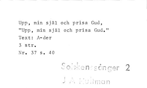 //// Upp, min själ och prisa Gud, //// "Upp, min själ och prisa Gud." //// Text: A-der //// 3 str. //// Nr. 37 s. 40 //// Sohkerrgcnger 2
