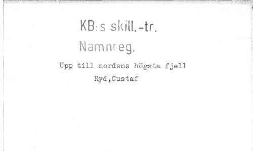 //// KB:s skiH.-tr. Namnreg. //// Upp till nordens högsta fjell Ryd,Gustaf