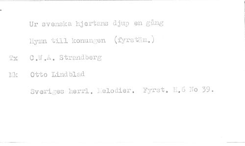 //// Ur svenska hjertans djup en g&ng Hymn till konungen (fyrstäm.) //// C.W.A, Strandberg Otto Lindblad //// Sveriges herrl. Lelodier. Fyrst. H.6 No 39.
