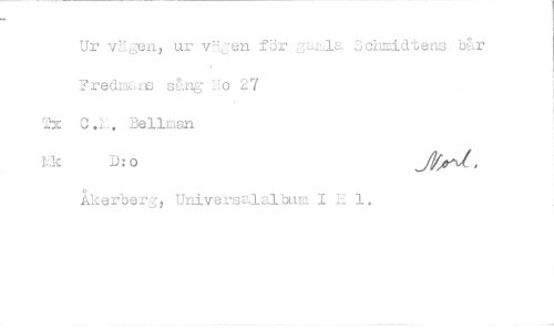 //// Ur vägen, ur vägen för FredERjje sång Ho 27 C .1 . Belltian D: o //// Åkerberg, Universalalbum I //// Schmidtens bår //// E 1.