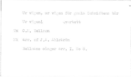 //// Ur viJjen, ur vägen för gamla Schiaidtens bår Ur .^vartett //// -X C .1.1. Bellmsn i'k arr. af J.A. Ählstrom //// Belliaans sånger arr. I. No 8.
