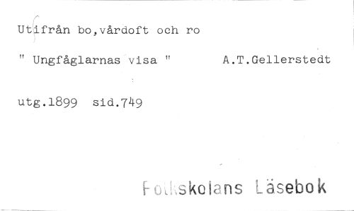 //// Utifrån bo,vårdoft och ro //// " Ungfåglarnas visa " A.T.Gellerstedt //// utg.1899 sid.749 //// skolans Läsebok