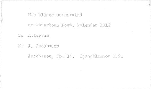 //// Ute blåser soBnnarvind ur ^tterbocis Poet, kalender 1813 Atterbom J. Jacobsson //// Jacobsson, Op. 14. Ljungblommor L.2.