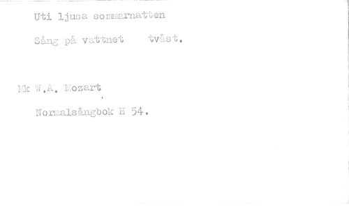 //// Uti ljusa sommarnatten Sång på vattnet tvåst. //// W.A. Mozart Noitialsångbok H 54.