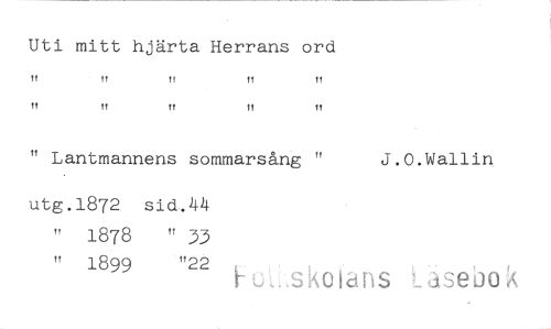 //// Uti mitt hjärta Herrans ord tt tt tt tt !t " " tt tt tt //// " Lantmannens sommarsång " J.O.Wallin //// utg.1872 sid.44 //// " 1878 " 33 " 1899 "22 , //// LaseooÅ