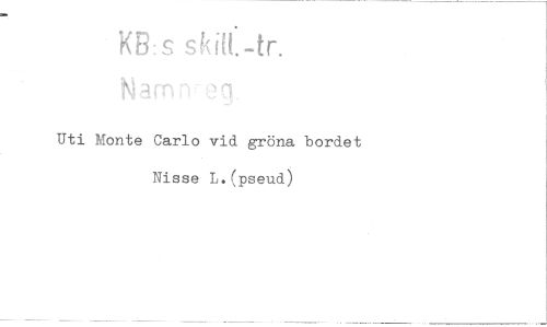 //// KB:s sMt.-tr. //// 'q //// Uti Monte Carlo vid gröna bordet Nisse L.(pseud)