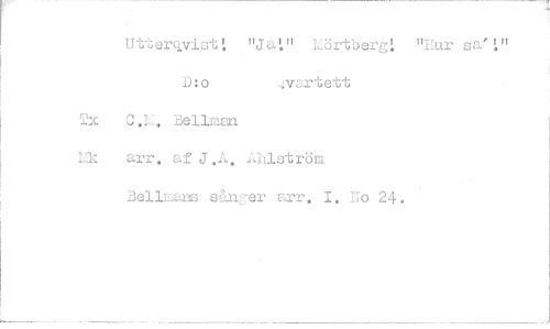//// Utterqvisti "JaL" LörtbergL "Hur sa/^" D:o ,ivc<rtett //// C.H. Bellmsn arr. af J.A. Ahlström Bellmans sånger arr. I. Eo 24.