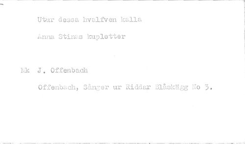 //// Utur dessa hvalfven kalla //// Amia Stinas kupletter //// Mc J. Offenbach //// Offenbach; Sånger ur Riddar Blåskågg No 3.