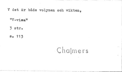//// V det är både volymen och vikten, //// "V-visa" //// 3 str. s. 113 //// Cha]mers