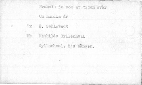 //// Hvabå?- j a nog är tiden svår * //// * //// Om hundra år ___ J //// E. Sehlstedt ... //// . A 7 å //// Mathtlda Gyllenhaal Gyllenhaal, Sju "sånger. '