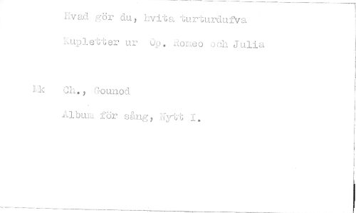//// Hvad c^ör du, hvits, turturdufva. //// Kupletter ur Op. Romeo och Julia //// Ch,, R-ounod //// Album för sa.ng, Nytt I.