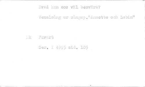 //// Evad kan oas väl besvära? //// Vexelsång ur sångsp."Annette och Lubin" //// i .k ? sv art //// Ser. I 4995 sid. 105