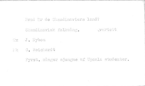 //// Bvad Kr de Skandinaviers land? //// Skandinavisk folksång. J. Nybom G. Reickardt //// .tvartett //// Fyrst. sånger sjungna af Upsala studenter.