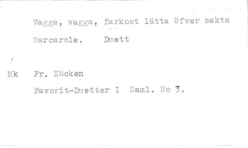 //// Vagga, vagga, farkost lätta öfver sakta Barcarole. Duett //// Fr. Kucken //// Favorit-Duetter I Sami. No 3.