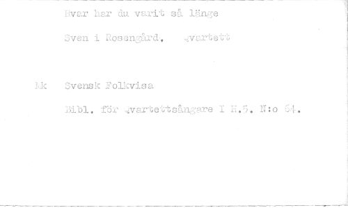 //// Kvar liar du varit s& länge Sven i Rosengård, ^vsrtett //// Svensk Folkvisa Bibi. för ovsrtettsångare I H.5. N:o 54.