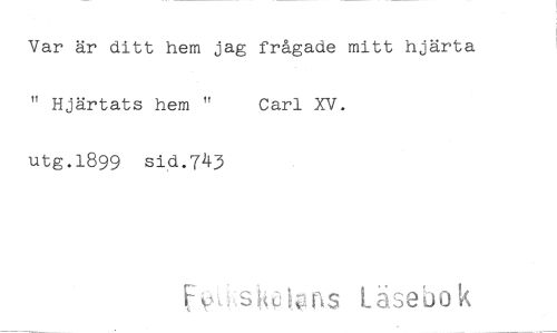 //// Var är ditt hem jag frågade mitt hjärta " Hjärtats hem " Carl XV. //// utg.1899 sid.743 //// Läse bo k