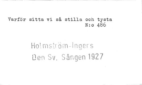 //// Varför sitta vi så stilla och tysta //// N:o 486 //// Hotmström-ingers Gen Sv. Sången 1927