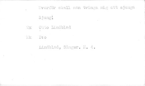 //// Tvarior skall man tvinga mig att sjunga SjungL //// 0'^to Lindblad D: o //// Lindblad, Sånger. E. 4.
