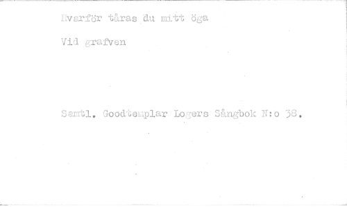 //// Hvarför tåras du mitt öga Vid grafven //// Sejntl. Goodtemplar Logers Sångbok N:o 38.
