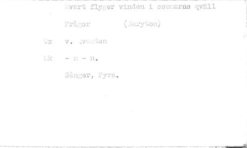 //// ^vart flyger vinden i somnarns qväll Frågor (baryton) //// -y v. ,vsn.*uen L.&: - L-t -- n. //// Sånger^ B'yra.