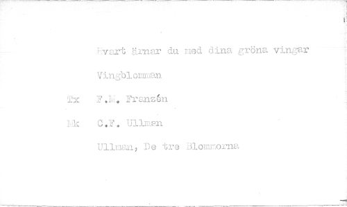 //// ; vart äi-nar du med dina gröna vingar ViiigbloEirdan Tx Franzén //// Hc C.F. Ullmen //// Ullman, De tre Blommorna