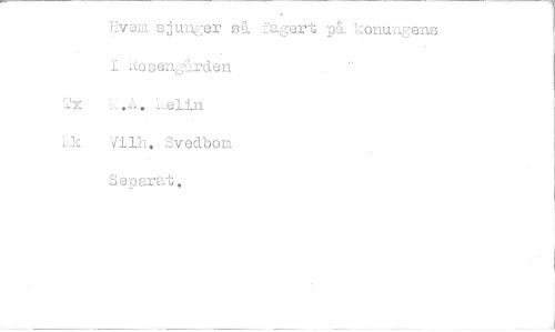 //// Bvem sjunger så fagert på konungens //// I Rosengården - .R. i . el in Vilh. Svedbom Sepsrat.