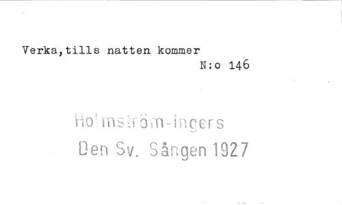 //// Verka,tills natten kommer //// N:o 146 //// ^10'ms<t osii-incers C en Sv. Sången 1927