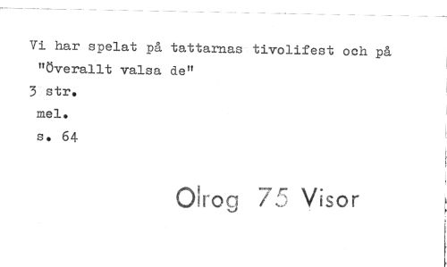 //// Vi har spelat på tattarnas tivolifest och på "överallt valsa de" //// 3 str. mel. s. 64 //// Oirog 75 Visor