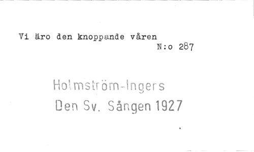//// Vi äro den knoppande våren //// N:o 287 //// Ho'rnström-inqers Ben Sv. Sången 1927