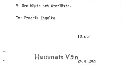 //// Vi äro köpta och återlösta. Tx: Fredrik Engelke //// IO.str //// Hemmets Vån //// 24.4.1969