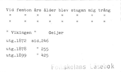 //// Vid femton års ålder blev stugan mig trång //// t! M !! !t 1! tt 1! t! //// !! H !! !t t! !! !T M //// " Vikingen " Geijer //// utg.1872 sid.246 //// utg.1878 " 255 utg.1899 " 425 //// t" ^,3K0 3,sebo k
