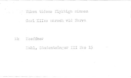 //// Viken tidens flyktiga minnen Cej:'l XII:s marsch vid Narva //// Haeffner //// Hähl, Students&Kk^er 111 N:o