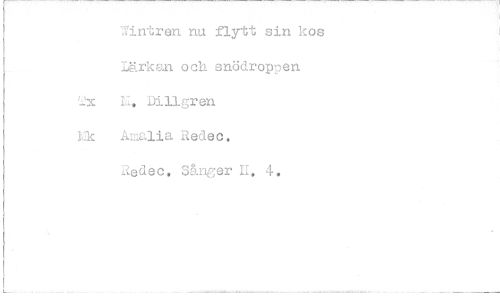 //// l?intren nu flytt sin kos Lärkan och snödroppen 'Jx E . Di 11 gr en Mk Amalia Redec. //// Redec, Sånger II. 4.