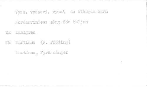 //// Vyss, vysseri, vyss^ du blåögda b^rn Nordanvindens sång för böljej^ //// Dahlgren //// Ilartinus (F. Fröding) //// Hartinus, Fyra sånger