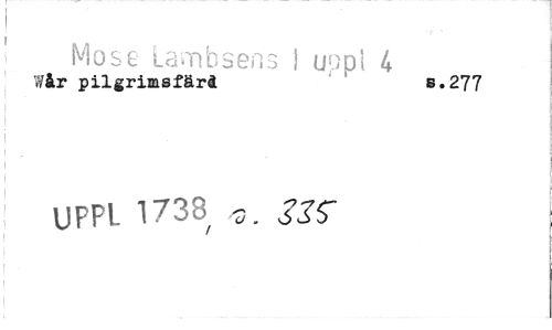 //// Mose Lambsens ! upp! //// Wår pilgrimsfårå //// UPPL 1738 jjf //// 4 //// s.277