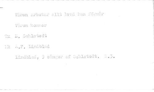 //// Våren arbetar allt lyad han förmår //// Vuran konmer ^ Qhls 10 d A,?, Lindblad //// Lindblad, 9 sånger af Gehlstedt.