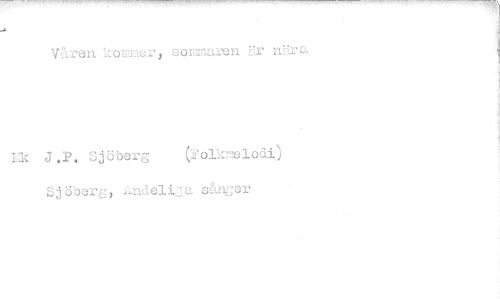 //// Våren kommer, sommaren är nära //// 12: J.P. Sjöberg (Folkn^lodi) Sjöberg, Jlndeli^a sånger