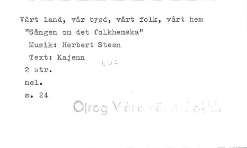 //// Vårt land, vår bygd, vårt folk, vårt hem "Sången om det folkhemska" //// Musik: Herbert Steen Text: Kajenn //// L ^ i- //// 2 str. mel. s. 24