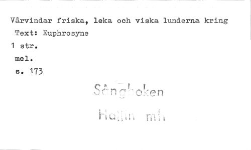 //// Vårvindar friska, leka och viska lunderna kring Text: Euphrosyne