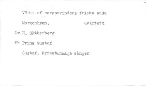//// Väckt af morgonvindens friska anda Morgonhymn. Qvartett //// Tx H. Sätherberg Hk Prins Gustaf //// Gustaf, Fyrastämmiga sånger