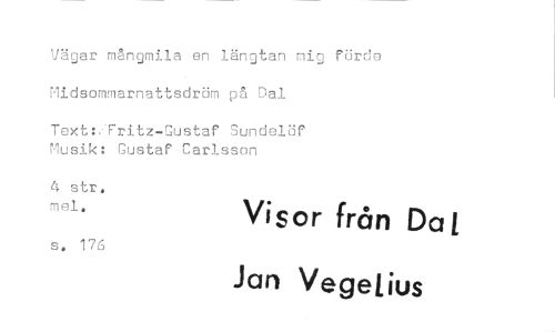 //// Vägar mångmila en längtan nig furdo //// MidsommarnattsdrSm på Dal //// Text:, Fritz-^ustaf SundelHf Musik: Gustaf Carlsson //// ^ str. //// mel. //// s. 176 //// Jan VegeHus