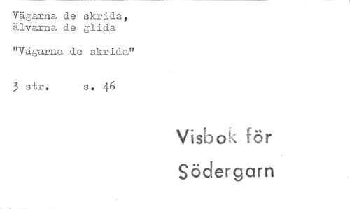 //// Vägarna de skrida, älvarna de glida //// "Vägarna de skrida" //// 3 str. //// s. 46 //// Visbok ^6r Södergarn