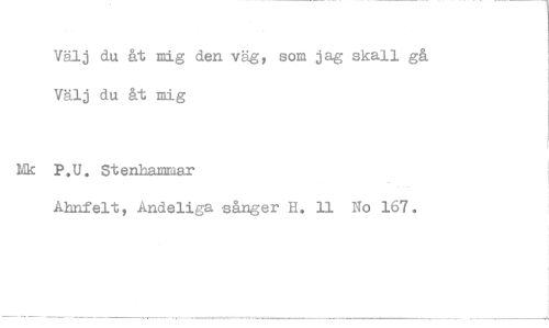 //// Välj du &t mig den väg, som jag skall gå Välj du åt mig //// P.U. Stenhammar //// Ahnfelt, Andeliga sånger H. 11 No 167.