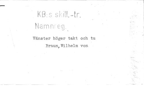//// KB:s sMt.-tr. //// Namnreg. //// Vänster höger takt och tu Braun,Wilhelm von