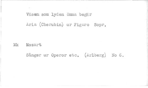 //// Väs an som lyd en ömma begär Aria (Cherubin) ur Figaro Sopr. //// Mozart //// Sånger ur Operor etc, (Arlberg)
