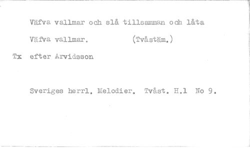 //// Väfva vallmar och slå tillsamman och låta //// Väfva vallmar. (Tv&stäm.) //// efter Arvidsson //// Sveriges herrl. Melodier. Tvåst, H.l No 9,