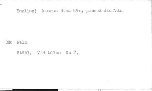 //// Ynglingi kransa dina har, Palm //// Ståhl, Vid bålen No 7. //// pressa drufvan