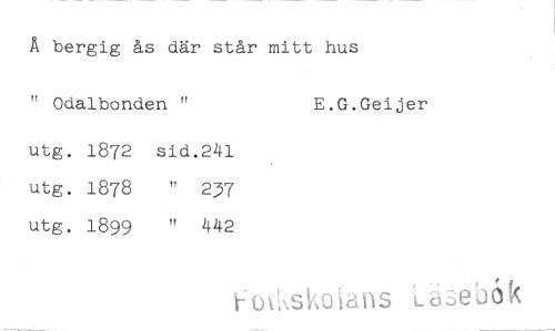 //// Å bergig ås där står mitt hus //// " Odalbonden " utg. 1872 sid.241 //// utg. 1878 " 237 utg. I899 " 442 //// E.G.Geijer //// ho^sko ians Läsebok